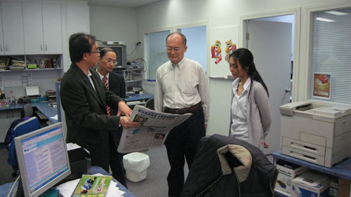 赵阳不顾旅途疲劳,随即进行拜访考察活动,于当天下午先后走访了《星岛日报》、《澳洲新报》和《新快报》三家华文报社,详细了解其稿件来源、采访编辑、读者群体、发行运营等方面的情况。