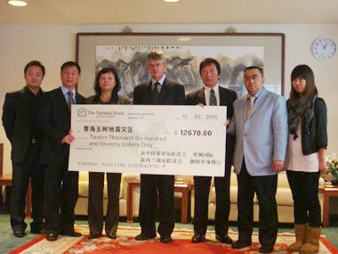 中新网5月12日电 据中国外交部网站消息,5月3日,新西兰新中贸易促进会、新西兰湖南联谊会、湘阁里辣餐厅、梁枫国际共同举办慈善晚会,为青海玉树地震募集了12,670新元的捐款。