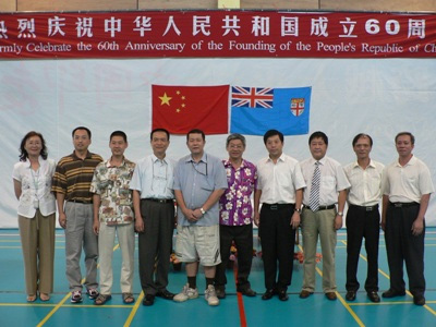 中新网9月21日电 据中国外交部网站消息,20日上午,座落在斐济首都苏瓦的华人学校斐济逸仙学校礼堂座无虚席,600多华人华侨和中资机构代表济济一堂,出席斐济中国和平统一促进会和华人协会联合举办的庆祝中华人民共和国成立60周年升旗仪式和文体活动。活动在庄严的中斐国歌声中开始。韩志强大使及和统会会长袁炳棠和华人协会会长司徒新耀分别发表了热情洋溢的致辞。