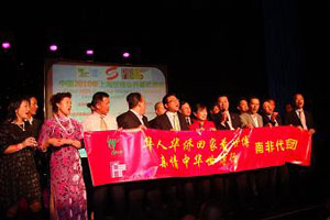 晚会行将结束时,房利总领事登台宣布:“华侨华人回家看世博、亲情中华世博行”南非代表团现在起程!