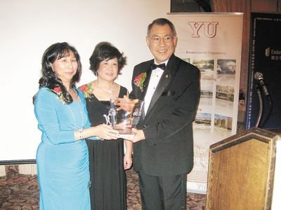 美华协会新泽西州分会日前于多多华市贝丝屋(Bethwood, Totowa)举办年度奖学金募款晚会,为优秀高中生及大学生提供论文比赛和暑期实习筹款,并颁发特别成就奖给敦畏三。