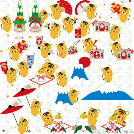 “不懂得有关老虎的知识,就不可能写好贺年卡,因为明年是虎年!”2009岁末之际,日本各个销售贺年卡的地方都推出了这样的广告词。日本《周刊文春》、《周刊新潮》等杂志更是以“虎”作封面,推出“新年特大号”,烘托出“虎”年即将到来的气氛。日本邮局发行2010年“干支文字邮票”,把十位书法家的“虎”字作品印制出来,显得很是虎虎有生气。