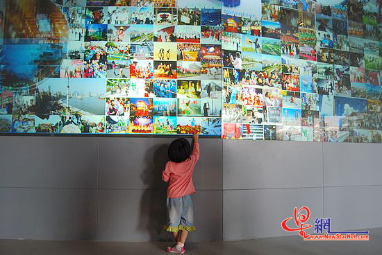 中国馆的第二部分“轨道车”,没什么看头,都是人造的桥呀,苏州园林呀,再配上灯光,哄哄小朋友还是很有趣的。第三部分有个荷花池,从顶落下的水幕非常有特色,它由字幕组成。像“天人合一”、“世博2010”等。画面表现了从白天到晚上的场景。这种世俗生活的场景让人有身临其境之感。