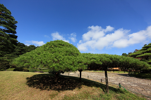 后来,我才知道,两棵松树之所以如此是因为一名园林工定期为它们截枝,不仅仅是截枝,有时还需要接枝,总之,松树一向是经过日本人精心照顾的。
