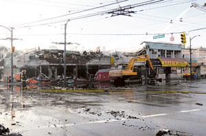 萨莱尔指出,大火不易控制,消防员奋战数小时,火场仍有多处燃烧。消防局总共出动50人、多辆消防车在不同角度灌水,直至天亮才完全扑灭大火。当局稍后召来大型起重机,推倒烧成废墟的建筑物。