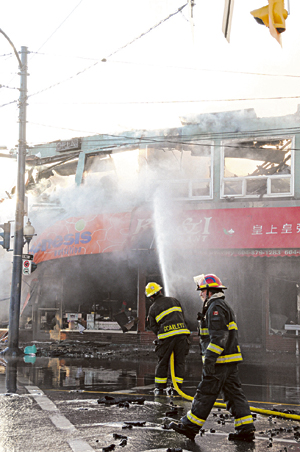 中新网12月27日电 据加拿大《星岛日报》报道,温哥华百老汇东街(E. Broadway)同京士威大道(Kingsway)路口一幢两层高老旧商业建筑物,圣诞日凌晨发生三级火,烧毁逾20家店铺,最少2家华裔餐馆受波及,幸无造成人命伤亡。