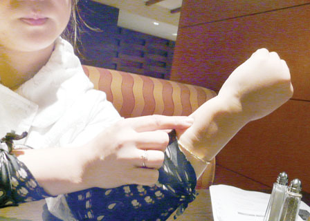 陈小姐当日展示她身上多处伤势,包括一只门牙爆裂、嘴唇受伤、左手腕及手背瘀肿、胸口肿痛等,她形容当时被两名警员扫跌压着一刻,整个人好像“散架”又四周无援,跟着又要锁在月台的铁栏示众,被大批乘客“眼望望”,那种难受无法用字句形容。