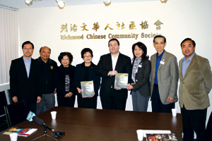 康尼联同联邦保守党烈治文选区国会议员黄陈小萍,14日下午到烈治文华人社会协会参观,祝贺该会成立20周年,并且与协会会长周剑琴等人会面,交流如何在烈治文华人小区提供移民服务的意见。