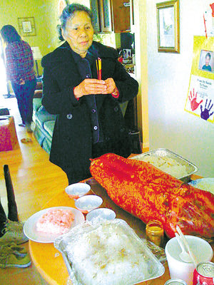 来自中国台湾、住钻石吧的张润妮,美国的娘家过春节顶多是家人上餐馆聚餐,但来自越南的夫家就讲究多了。尤其是越华裔夫婿是长子,每年农历春节,她的婆婆就会带着烧乳猪、甜糯米等贡品到她家摆起贡桌,祭拜灶神。