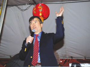 前来湾区推广2010年人口普查的美国联邦商务部部长骆家辉适逢其会,也乘车参加了游行,并在主席台上向民众致词。骆家辉呼吁大家踊跃参加人口普查,为自己争取权益,他并向在场嘉宾和民众致以新年祝福。