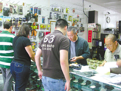 何先生不愿透露具体销售情况,但表示,从199元一支的普通半自动手枪到4500元一支的高级手枪,都有华人购买,多时一天买枪的人超过两位数。