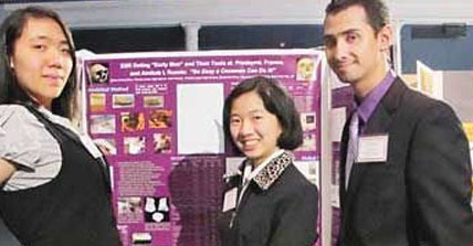 来自纽约市皇后区弗朗西斯刘易斯高中的周萧媛、伊莎拉.阿曼德和曼哈顿史岱文森高中的陈嘉明三人组,以“人类祖先迁徙路线”的研究获胜。(宋怡帧)