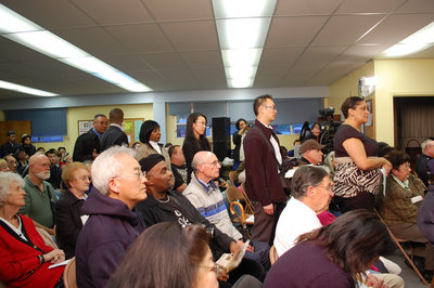 当晚,会议现场人满为患,因为座位有限,到场居民踊跃,一些人不得不站到会场后面或者外围聆听。据美国《侨报》报道,为了方便华裔居民旁听,现场还提供中文翻译。在例行的警察局局长盖斯肯汇报工作和其它程序后,曾经担任过前市议员赵悦明助理的李美玲首先代表民众上台发言。在湾景区居住超过12年的她由于近期接连三度发生华人被殴事件,而对人身安全颇为担忧,要求警方能够加强维安力度,并认真调查案件起因。