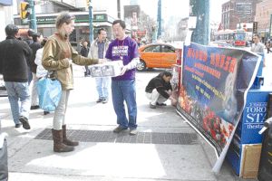 由多伦多华人团体联合会副主席王清官、杨学武及黄政等,24日中午偕同一班义工,在中区华埠拉起“爱心多伦多,真情系玉树”的横额,为青海玉树的7.1地震灾民展开街头募捐活动。在熙来攘往,人潮如鲫的士巴丹拿与登打士西街街角,一众义工忙于呼吁路人踊跃捐助。当中,除了路过的华人乐于捐助外,不少主流人士,在了解募捐目的后,亦纷纷解囊相助,益见人间真爱,无分国界地域。