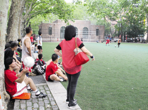 位于格兰街的罗斯福球场是华埠唯一像个模样的足球场,是体育会必争之地,周日上午是华协体育会踢球,下午则多是华联体育会租借。张少伟说,跟4年前一样,该会在世界杯期间举办了“小型世界杯”比赛,共有9支队伍参赛,今次除华人队伍之外,还有越南、荷兰、墨西哥、意大利、韩国等族裔组队参加,有些队伍因人数不够,大会也批准队伍中可有女性球员。