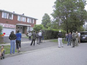 唐炜臻的烧烤会13日下午2时许,如期在其家中的后院举行,唐在家门前对媒体做了一番有关自己的案件是“冤假错案”的表白。他家的车房门上方,依旧高悬写有中英文口号的横额“唐炜臻一案,加拿大最大的冤假错案”。