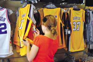 在圣盖博谷地区经营一家体育运动服装专卖店的店主告诉记者,湖人在整个球季的表现很好,给他带来了不少的生意。特别是“24”科比、“16”加索尔等热门球衣,受到民众的追捧,一度供不应求。(蔚宇)