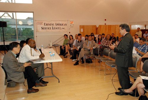 科瓦姆•罗奥尔主席在会上仔细听取了社区代表的意见和呼声,并且向大家通报了伊州议会的有关活动和选区重划议题的进展情况。他说,最近民主党和共和党在州议会为争取选区划权各自提出了议案,但最终两党议案均未获得通过。他将会考虑提出一个改革法案,要照顾到同一种族人口不到选区一半以及少数民族语言社区的利益。罗奥尔说,如果华人社区能组织起来发出一致的声音,那末那就会形成一种左右局势的力量。