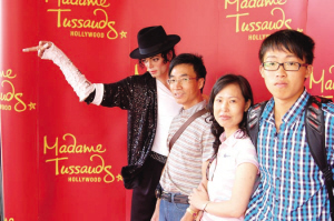 来自深圳的商人陈小兴、周娥夫妇是带着儿子陈晓灏来美看学校的。陈小兴说,从幼年起,麦克尔·杰克逊就是自己的偶像,今天在美旅游途中能看到他的蜡像很幸运。天津汉沽一中的高中生王冠一是同父母及外婆来美旅游的,他表示,很新欢麦克尔·杰克逊。从北京来美旅游的袁宗阳、朱瑞龙夫妇,看到麦克尔·杰克逊的蜡像兴奋不已,竟然两次排队与蜡像合影。