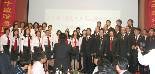 联欢会上,米兰华侨华人妇女会、米兰第一中文学校、米兰爱琴海乐队及留学生代表等表演了歌舞、器乐、书法等节目,用各种形式表达对祖国60华诞的衷心祝贺!最后,米兰华人合唱团合唱《没有共产党就没有新中国》和《歌唱祖国》,全体来宾与合唱团一同高歌,唱出了全体旅意华人的心声。