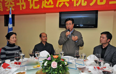 赵书记给浙江籍旅希侨胞带来了浙江省委省政府和全省人民的亲切问候,称赞他们在支持北京奥运会圣火在希腊取火传递、支援四川抗震救灾、为希腊森林火灾和困难儿童捐款捐物等行动中,体现出侨民心系祖国发展、积极融入希腊、建设模范侨区的优良精神风貌。他和大家一起深情回顾了新中国建国60年、改革开放30多年来取得的辉煌成就,对侨胞们在希腊艰苦创业十余年取得的丰硕成果表示祝贺。
