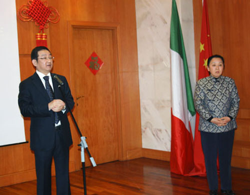 招待会由何风云副总领事主持,张利民总领事首先向来宾和旅意广大侨胞致以新春的祝福。张利民总领事说,2009年,中国成功举办新中国60周年庆典,为全球抵御国际金融危机做出了积极的贡献,中国在与世界各国的交流中取得了丰硕的成果。特别是中国国家领导人吴邦国委员长、胡锦涛主席相继访意,把两国关系推向了新的高潮。随着2010年中意文化年的举办,相信中意两国关系一定会跨入一个新的历史阶段。
