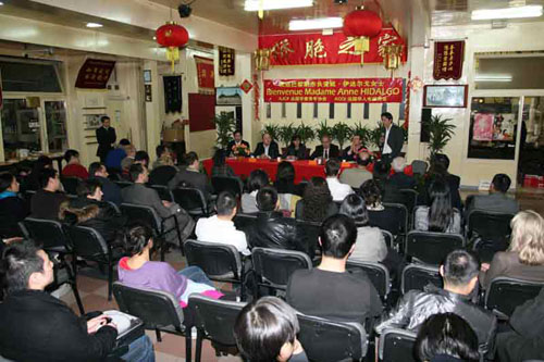 3月1日晚上7点,巴黎第一副市长AnneHIDALGO女士如约来到华侨华人会时,现场近百个观众座位已经坐满了华裔青年,嘉宾席上还有三区区长PierreAIDENBAUM和十三区副区长陈文雄。法国华裔青年协会会长郑立和法国电脑商会会长张海平首先致辞,他们均是站在华人的立场提出对巴黎市政建设问题的一些看法和建议,如取消店铺附近停车位损害商家利益,美丽城地区的治安问题,学校应该增设中文课给华裔小朋友等,并强调指出他们这一代已经做好准备参与法国的社会和政治生活。
