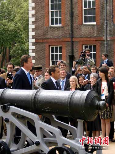 在英国BBC旧址,萨科齐和夫人布吕尼在卡梅伦和英国查尔斯王子的陪同下,为一座戴高乐纪念碑揭幕。在卡林顿园林,萨科奇向戴高乐和丘吉尔的雕像献花。