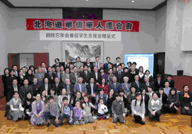 北海道华侨华人联合会会长陶惠荣向与会嘉宾汇报了联合会一年的工作情况,还进行了留学生奖学金、“五好家庭”颁奖和猜谜等活动。(张玥)