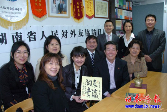 日本湖南人会会长段跃中向庞力平副会长等介绍了该会成立10个月的情况。日本湖南人会去年5月在东京成立。成立伊始,就坚持利用主流社会资源、面向中日两国办会的方针,不仅发挥会员的作用,还团结更多喜欢湖南和中国的日本朋友,同时成立了“日本湖南之友会”,邀请先后担任日本防卫大臣和经济产业大臣的参议院议员林芳正、日本众议院议员后藤田正纯、参议院议员木俣佳丈、著名作家石川好、日中协会理事长白西绅一郎等出任该会共同代表。日本前首相村山富市听取了段跃中关于创办“日本湖南之友会” “日本湖南人会”的经过,称赞这是一件有利于日中友好、有利于促进日本和湖南省交流的好事,愉快地接受了出任“日本湖南之友会” “日本湖南人会”特别顾问的邀请。