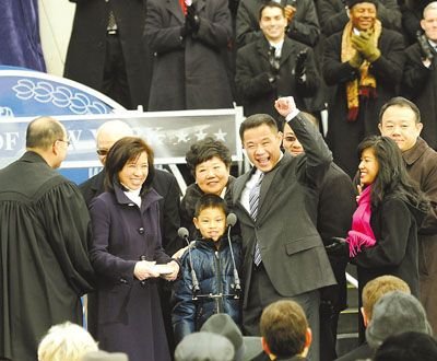 中新网1月4日电 据美国《侨报》报道,在新年的第一天,纽约迎来历史上首位亚裔主计长。华裔刘醇逸在家人的陪同下,于1日上午在市府大楼前正式宣誓就职,成为纽约市的第43任“第三把手”主计长。他在就职演说中承诺,将充分履行主计长的职责,和市长及公益维护人一道,确保纽约人有一个光明的未来。