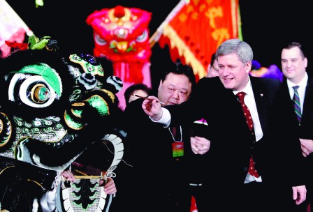 中新网2月12日电 据加拿大《明报》报道,加拿大总理哈珀10日到华埠中华文化中心,会见温哥华市侨社代表,向当地华社拜早年,并赞扬华裔是加国的模范移民。哈珀行程一度因为支持温哥华市安全注射屋可续运作的人士示威影响,延迟了3个小时才到场。