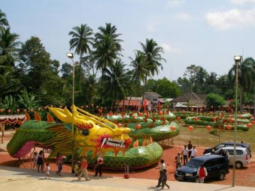 当晚约有数千民众来到邦加岛的北部城市烈港的Kampung Kenanga(Chit Fun),进入当地YPK学校的广场,观看热烈的舞狮表演。该长龙展示,同时长龙身上敷贴了2万个小年糕。