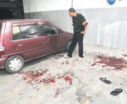 来自上海的李杰(29岁),除被巴冷刀直插胸口外,双脚大腿、左手臂、左颈项也被劫匪利刀割伤,他在遇劫受重创倒地后,身边的女生意合伙人在保安人员协助下,召来民防部队将他送往槟城医院抢救,最终失血过多不治。