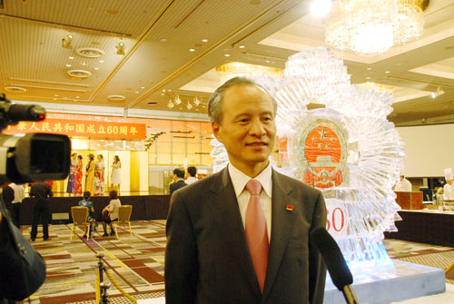 中新网9月30日电 据日本新华侨报网报道,29日,中国驻日本大使崔天凯在东京举行盛大招待会,热烈庆祝中华人民共和国成立60周年。日本内阁官房长官平野博文、财务大臣藤井裕久等11名内阁大臣,众议院议长横路孝弘、参议院议长江田五月、前首相羽田孜、森喜朗、福田康夫,日本经济、科技、教育、文化、新闻等各界及对华民间友好团体负责人,在日华侨华人、留学生、中资机构代表共约2000余人应邀出席了招待会。