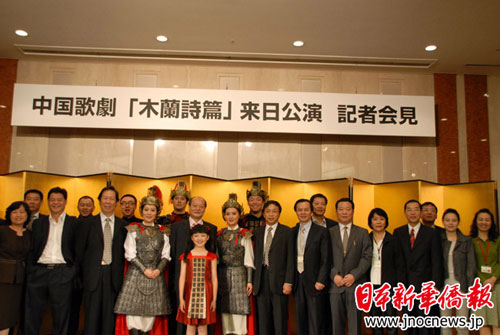 据介绍,花木兰代父从军的故事是中华民族代代相传的感人篇章,2004年,这一故事被创作成歌剧《木兰诗篇》,不但在国内受到好评,还在美国、奥地利上演,赢得国际声誉。这次赴日演出,《木兰诗篇》又经过中日两国艺术家的重新制作,总政歌舞团团长彭丽媛任艺术总监,雷佳、谭晶、王丽达等主演木兰,中国指挥家李玉宁和日本指挥家堤俊作将联合执棒指挥日本皇家交响乐团演奏,中方演出队伍达110多人。