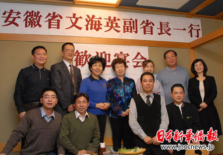 文海英副省长最后热情洋溢地说:“在座的各位都是在日华人的精英,你们在异国他乡奋力拼搏,取得了可观的成绩,也拥有很多回国发展的资源,希望你们为中日两国的经济、文化的发展和交流进一步作出努力。同时,欢迎安徽籍的在日华人同胞回到安徽发展,为家乡的繁荣作出更大的贡献。”