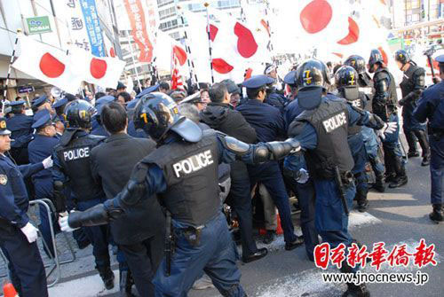 面对右翼分子的叫嚣,“阳光城”的华人员工显得非常沉着冷静,依然热情接待来到这里的每一位客人。在现场,日本警方也积极维护华人不受伤害。右翼分子在讲演中攻击中国留学生,一位中国女留学生勇敢地站出来,大声说:“我是中国人,是中国留学生,你们都是‘右翼垃圾’!”当右翼分子要对这名女学生动手时,警员立即冲过来加以保护。