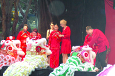 纽省省长简纳莉、悉尼市长摩雅、中国驻悉尼总领事胡山、农历新年庆典活动顾问小组主席郭耀文市议员、重庆市代表团领导为舞狮主持点睛仪式。