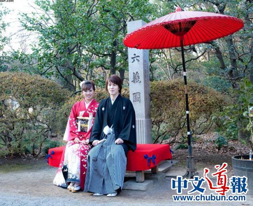 2010年2月7日,记者在日本旧古河庭院见到了这一对幸福的夫妻。他们已经穿上婚纱和礼服,准备拍摄婚纱照了。