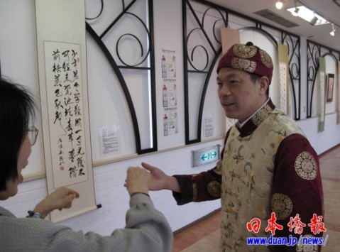 这位浓眉大眼的大汉,是湖南岳阳人,眉宇间有一股坦荡之气逼人。总让笔者怀疑是武林中人。就是这位,自2001年来日本传播指书文化,短短10年间,已是列岛上下,上至国家政要,下至普通市民,争相结交的人气者。