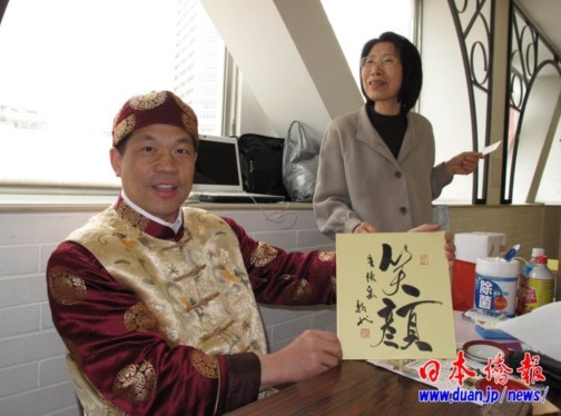 身为NPO法人日本指书振兴协会理事长和日本湖南人会理事的唐怀岳,正在东瀛岛国用他的大拇指书写着中日文化交流的崭新篇章。