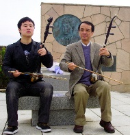 中新网4月12日电 据日本新华侨报网报道,4月9日,中国旅日的国际著名二胡演奏家董金明与同是从事二胡演奏事业的长子在日本神奈川县藤泽市鹄沼海岸的聂耳纪念碑前举办了现场演奏会。