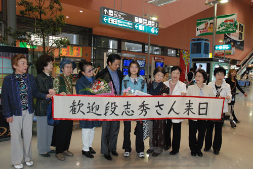 4月19日下午,北川女孩段志秀与李广宏一起走下飞机,在关西机场,在此等候的日本友人向段志秀献花,并鼓励她在日本早日战胜病魔,段志秀在机场说:“我要在日本学习很多有关抗震的知识,并打算将来到日本留学。”(渡边)