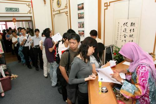 中新网5月10日电 据马来西亚《光明日报》报道,5月9日马来西亚的雪华堂外一大早已停满车辆,许多华裔男女们都聚集在华堂内参加反贪会的讲座会及招聘活动,现场一片人山人海景象。在出席的申请者当中,多数以22至26岁的年轻男女居多,但当中也不乏具有工作经验及专业技能的中年申请者。