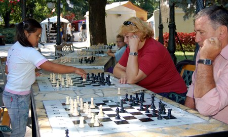当天是星期天,位于凯什凯米特市中心的公园内游人如织,位于公园一侧的国际象棋角正在举行着一场特殊的比赛。