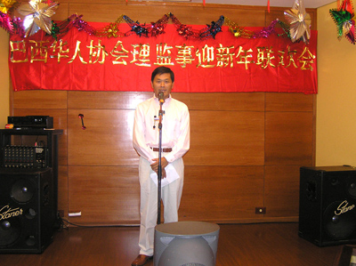 中国驻圣保罗总领事李姣云率全体领馆人员应邀出席联欢晚会。李总领事在致词时说,过去的2006年,是祖国各项事业继续取得辉煌成就的一年,也是中巴友好关系进一步发展的一年。值得侨胞骄傲的是,中巴贸易达到了160多亿美元,预计今年将达到200亿美元,中国经济持续高速和健康的发展促进了中巴贸易,为此间的华人带来了无限的商机。
