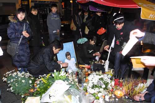 中国留学生在闫明遇害地举行悼念活动。