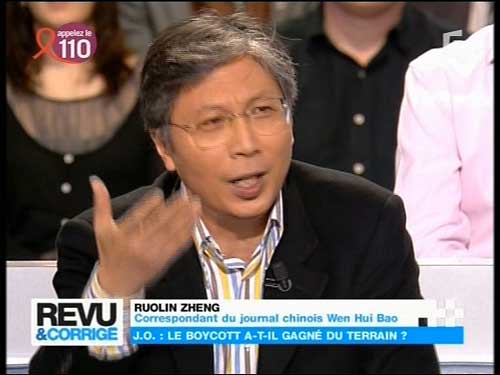 上海《文汇报》驻法记者郑若麟在法国电视台数次参加辩论。(视频截图)