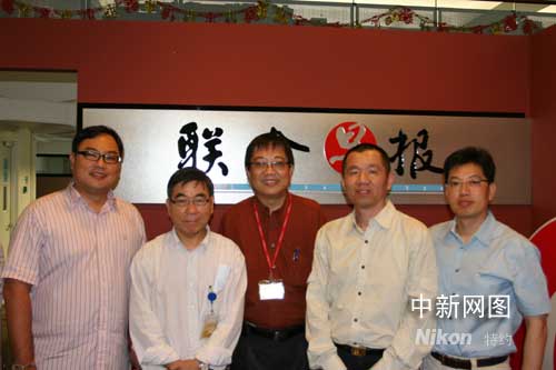 中国新闻社副总编辑夏春平与新加坡《联合早报》总编辑林任君及该报编辑记者合影。
